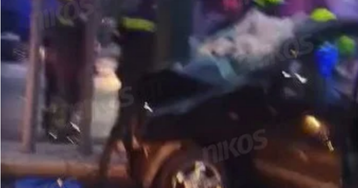 Όπως φαίνεται στο βίντεο του enikos.gr, το όχημα που «καρφώθηκε» στην κολώνα καταστράφηκε ολοσχερώς.