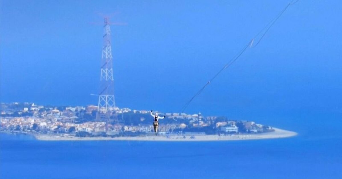 Δείτε το εγχείρημα του Εσθονού κασκαντέρ να περάσει από την ηπειρωτική Ιταλία στη Σικελία ισορροπώντας σε λεπτό ιμάντα, στα στενά της Μεσσήνης.