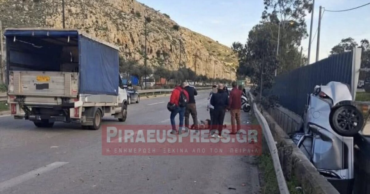 Όπως φαίνεται στη φωτογραφία του piraeuspress.gr, ένας άνθρωπος βρίσκεται τραυματισμένος στη μέση του δρόμου.