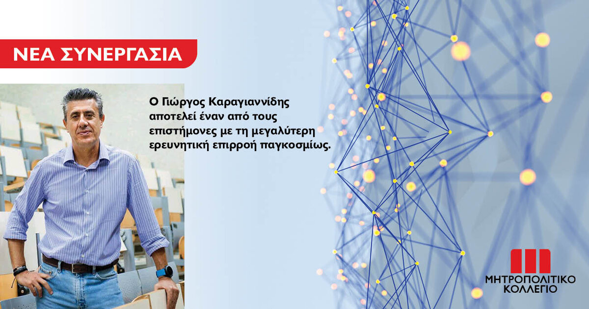 Το Μητροπολιτικό Κολλέγιο, το μεγαλύτερο Κολλέγιο Πανεπιστημιακών Σπουδών στην Ελλάδα, βρίσκεται στην ευχάριστη θέση να ανακοινώσει την έναρξη μιας πολύ σημαντικής, πολυδιάστατης συνεργασίας, με τον διακεκριμένο καθηγητή Ψηφιακών Τηλεπικοινωνιακών Συστημάτων και Διευθυντή του Τομέα Τηλεπικοινωνιών του Τμ. Ηλεκτρολόγων Μηχανικών & Μηχανικών Υπολογιστών του Αριστοτελείου Πανεπιστημίου Θεσσαλονίκης (ΑΠΘ), Γιώργο Καραγιαννίδη, με κύριο στόχο να δημιουργήσουν ένα δίαυλο αλληλεπίδρασης και επικοινωνίας γύρω από τη ραγδαία ανάπτυξη και εξέλιξη της τεχνολογίας τα τελευταία χρόνια.