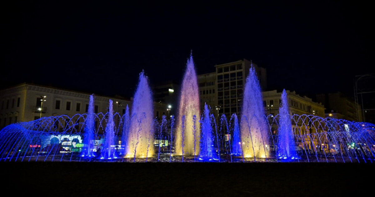 Στα χρώματα της ουκρανικής σημαίας το σιντριβάνι της Ομόνοιας και η Τεχνόπολη