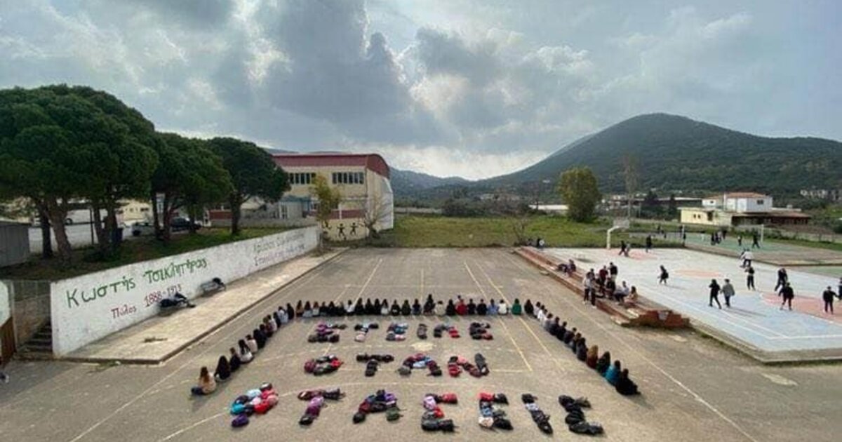 Γράφοντας με τις τσάντες τους, στο προαύλιο χώρο του σχολείου τα συνθήματα “Στείλε όταν φτάσεις” και “Όχι άλλα εγκλήματα” εξέφρασαν την οργή τους για το τραγικό σιδηροδρομικό δυστύχημα.
