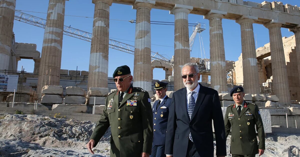 Τον Ιωάννη Σαρμά συνόδευε ο Αρχηγός ΓΕΕΘΑ Κωνσταντίνος Φλώρος.