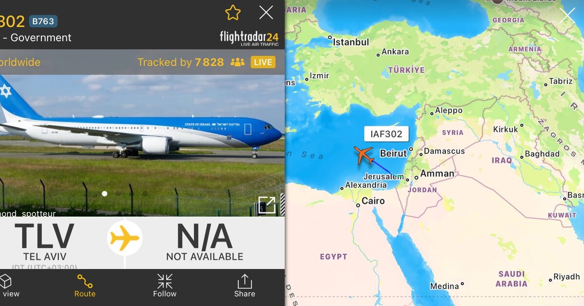 To πρωί δημοσιογράφος της Jerusalem Post δημοσίευσε μια φωτογραφία του αεροπλάνου «Φτερά της Σιών» του Νετανιάχου, συνοδευόμενου από δύο μαχητικά αεροσκάφη, να αναχωρεί προς άγνωστο προορισμό.
