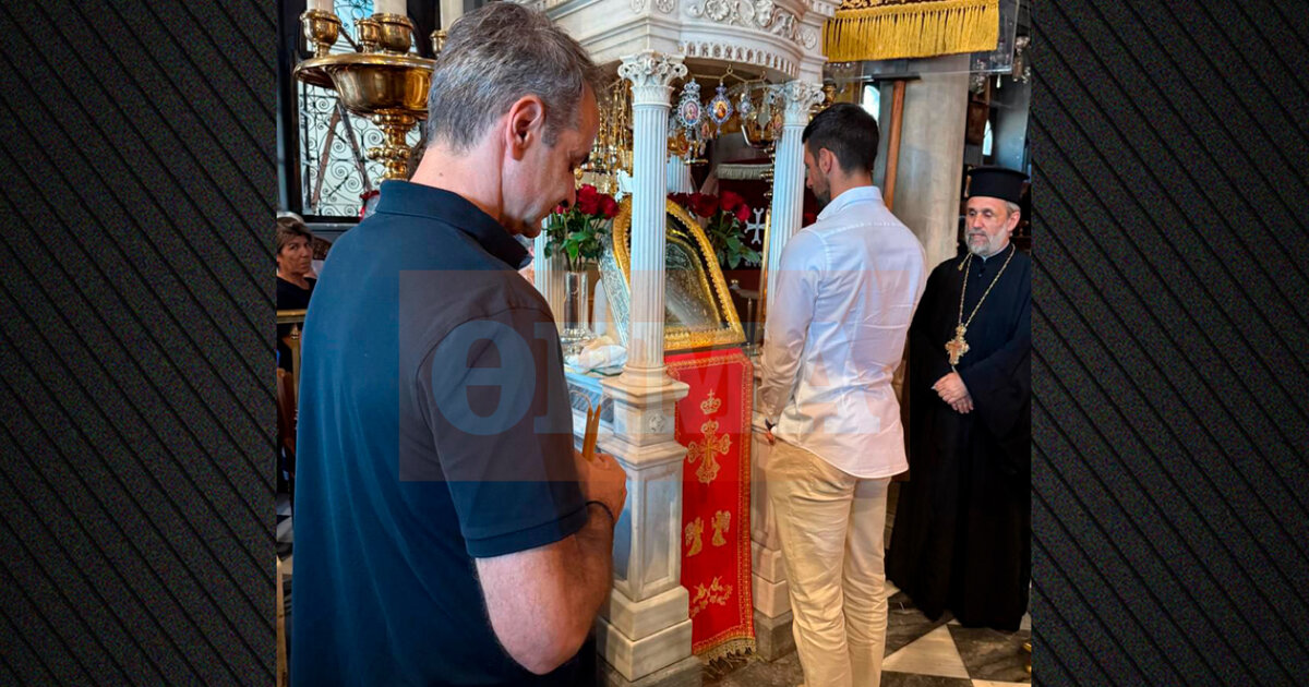 Λίγα λεπτά αργότερα, οι δεκάδες πιστοί που βρίσκονταν στην Παναγία είδαν ανάμεσά τους τον «Νόλε» και τον κ. Μητσοτάκη να περιμένουν να ανάψουν κερί και να προσκυνήσουν τη θαυματουργή εικόνα.