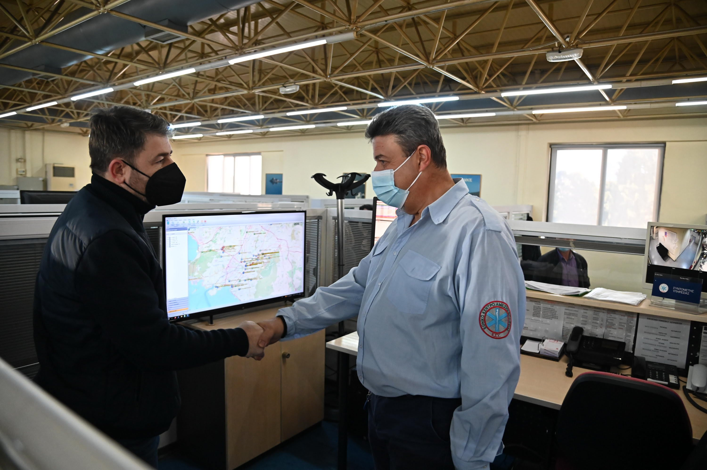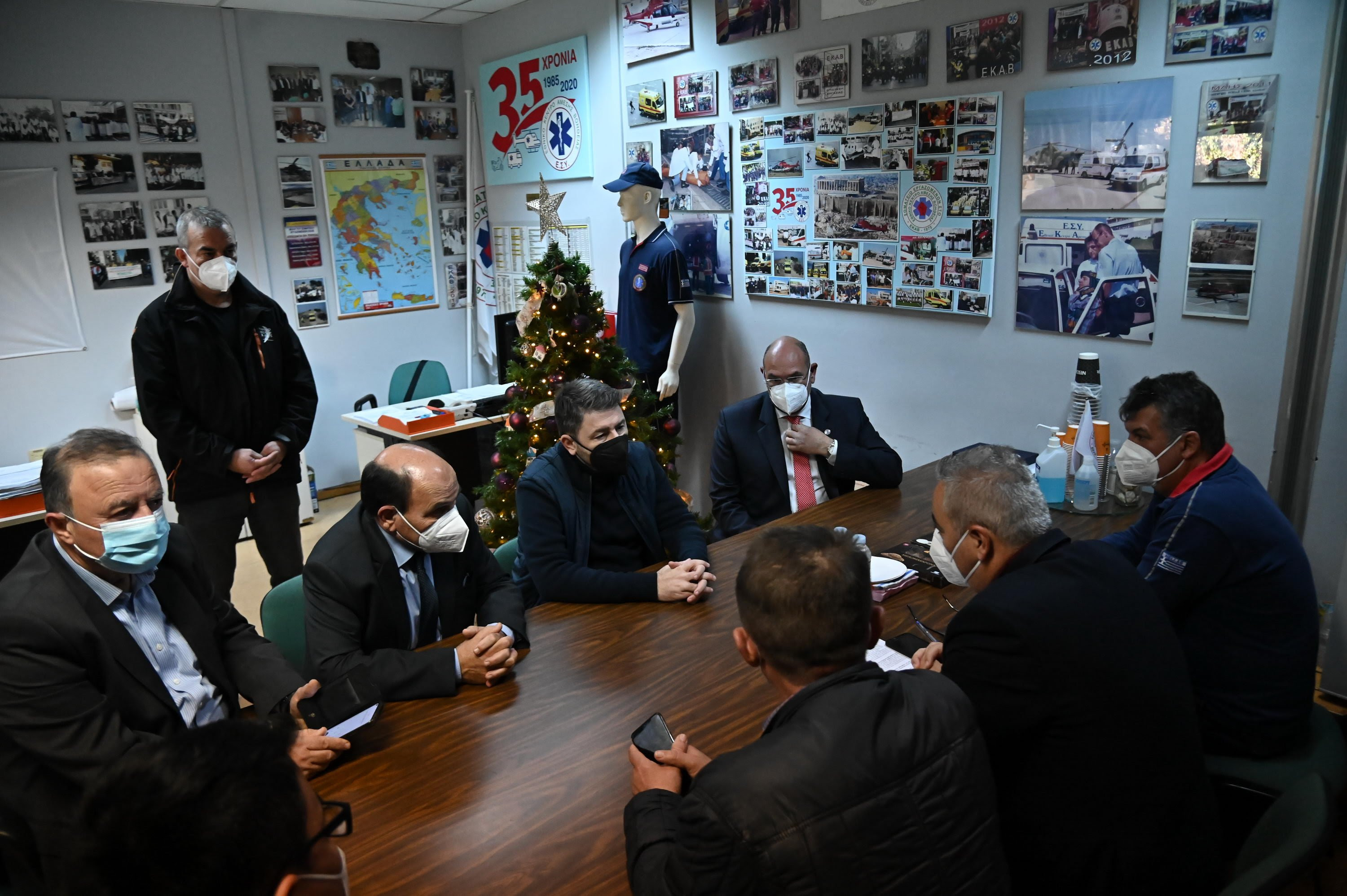 Με τους εργαζομένους στο Κέντρο Επιχειρήσεων Υγείας του ΕΚΑΒ αντάλλαξε ευχές ο Πρόεδρος του ΠΑΣΟΚ-Κινήματος Αλλαγής.