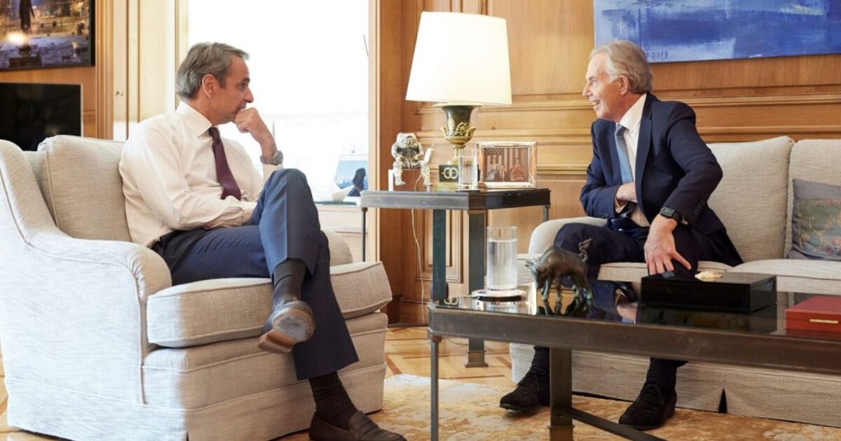 Ο Πρωθυπουργός Κυριάκος Μητσοτάκης συναντήθηκε το απόγευμα στο Μέγαρο Μαξίμου με τον πρώην πρωθυπουργό του Βρετανίας Τόνι Μπλερ.