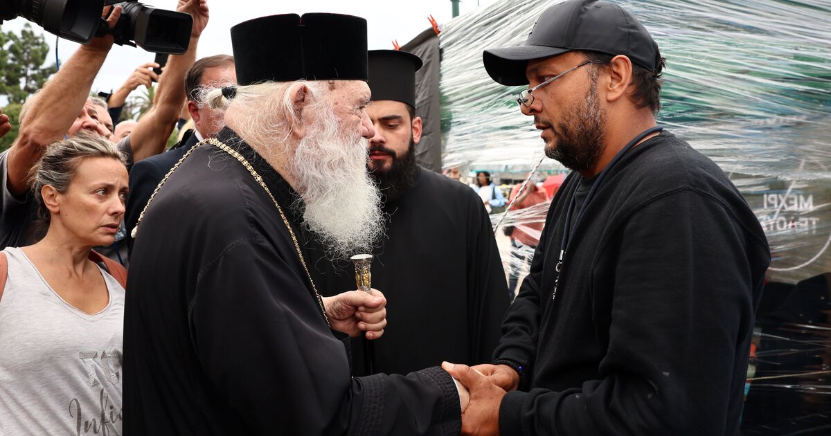 Αμέσως μετά την ολοκλήρωση της λειτουργίας, ο κ. Ιερώνυμος βγήκε από τη Βουλή και επισκέφθηκε τον Πάνο Ρούτσι, που συνεχίζει για 22η ημέρα την απεργία πείνας.
