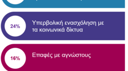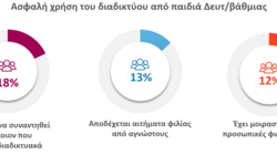 Η χρήση κοινωνικών δικτύων ξεκινά από το Δημοτικό και είναι καθημερινή, γεγονός που ενισχύει τις υποχρεώσεις προστασίας ανηλίκων. Μάλιστα, πολλά παιδιά δαπανούν πάνω από 4 ώρες ημερησίως στις πλατφόρμες, με 1 στους 4 μαθητές Γυμνασίου/Λυκείου να δηλώνει υπερβολική χρήση, ενισχύοντας την ανάγκη για εργαλεία γονικού ελέγχου και αυτορρύθμισης. Την ίδια ώρα, στη Δευτεροβάθμια εκπαίδευση υπάρχει σοβαρό έλλειμμα γονικού ελέγχου, ενώ 1 στα 4 παιδιά ανοίγει λογαριασμό χωρίς να είναι ενήμεροι οι γονείς.