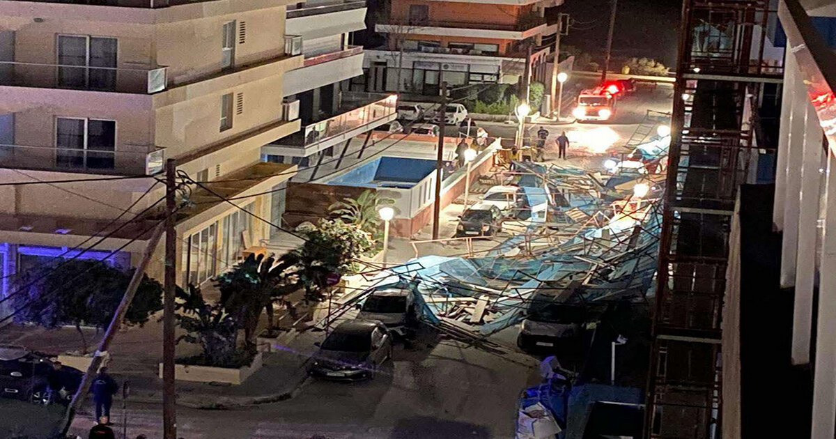 Ζημιές σε περισσότερα από 20 αυτοκίνητα προκάλεσε η πτώση σκαλωσιάς σε υπό ανακαίνιση ξενοδοχειακό συγκρότημα στην περιοχή του Νεοχωρίου.