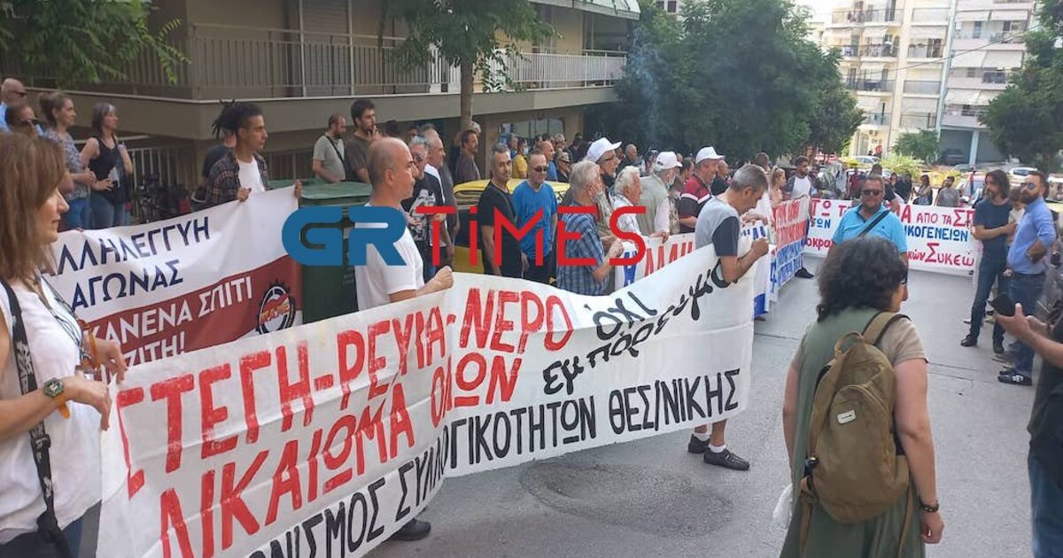 Οι εκατοντάδες διαμαρτυρόμενοι καταγγέλλουν «με τον πιο κατηγορηματικό τρόπο άλλη μια απόπειρα αρπαγής λαϊκής περιουσίας και συγκεκριμένα της πρώτης κατοικίας οικογένειας φτωχών βιοπαλαιστών».