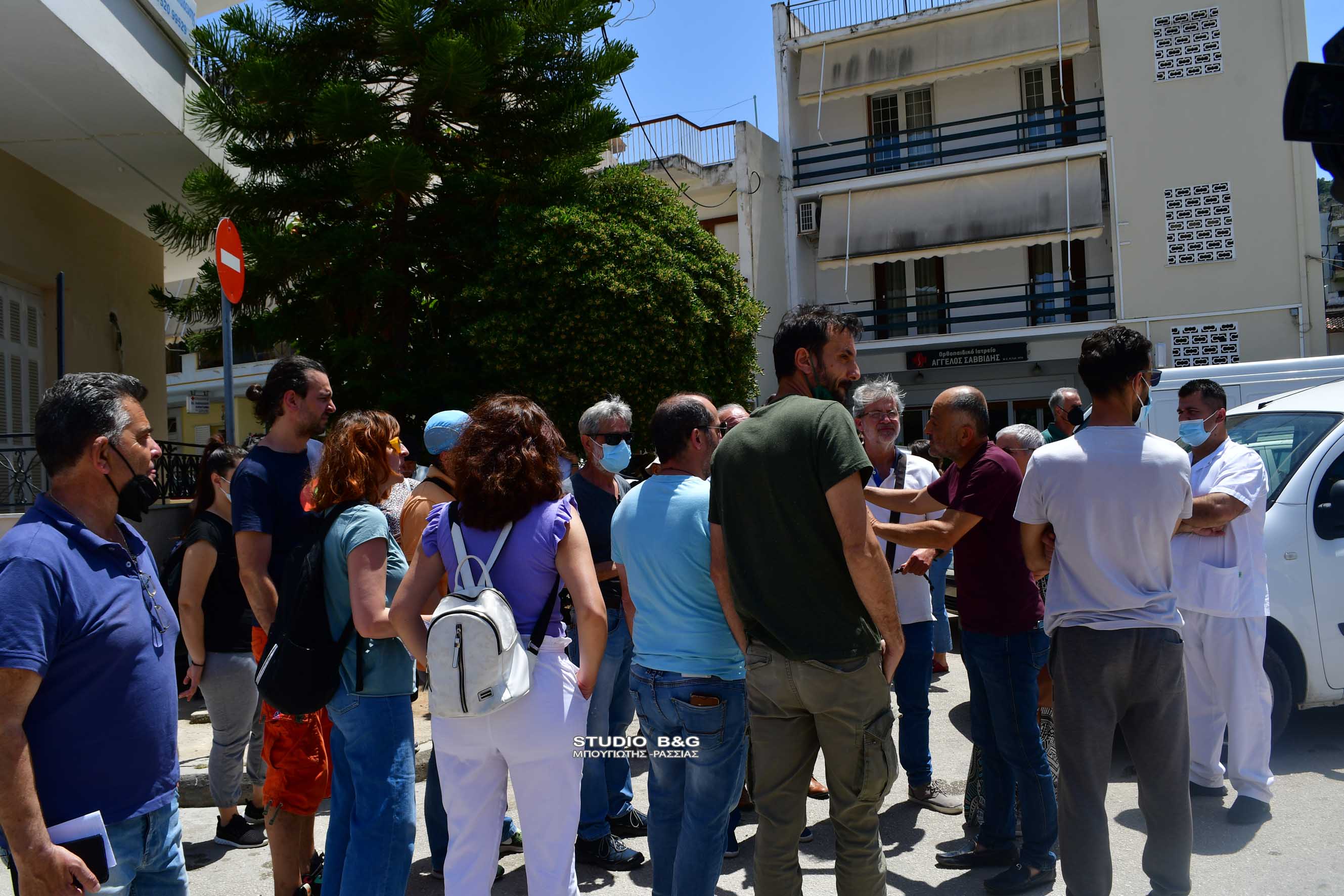 Συγκέντρωση διαμαρτυρίας έξω από το νοσοκομείο Ναυπλίου από την ένωση συλλόγων Κηδεμόνων του Δήμου Ναυπλιέων κι άλλων φορέων για την απουσία παιδιάτρου από το Νοσοκομείο Ναυπλίου, Παρασκευή27 Μαΐου 2022.