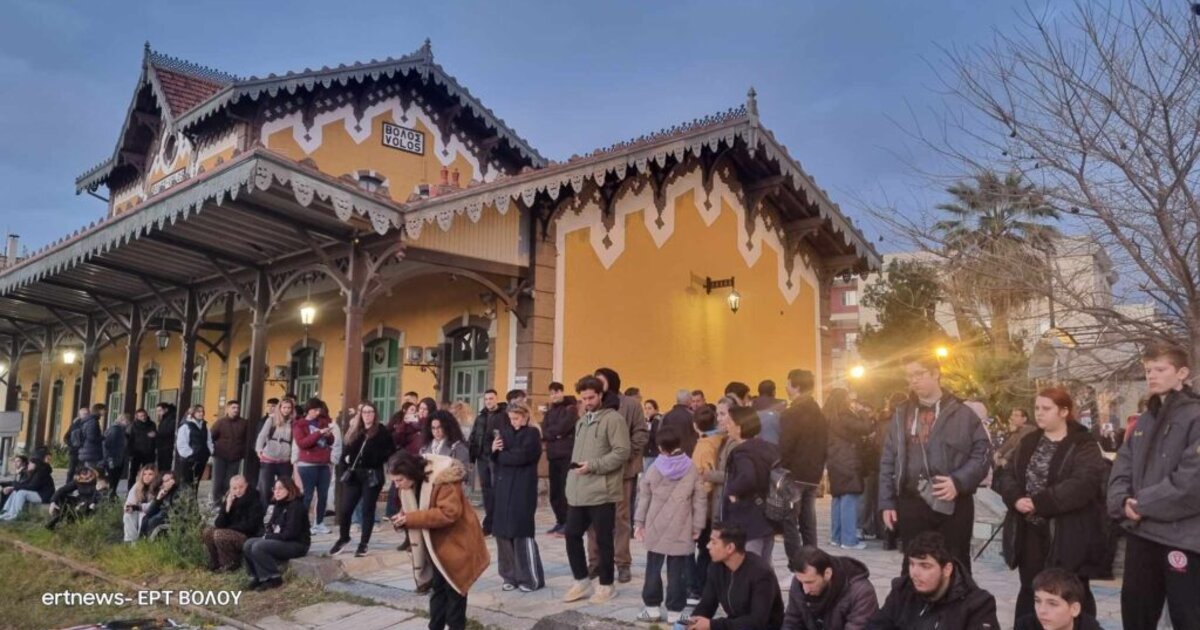 Συγκέντρωση εργατικών σωματείων στο σιδηροδρομικό σταθμό του Βόλου για την τραγωδία των Τεμπών