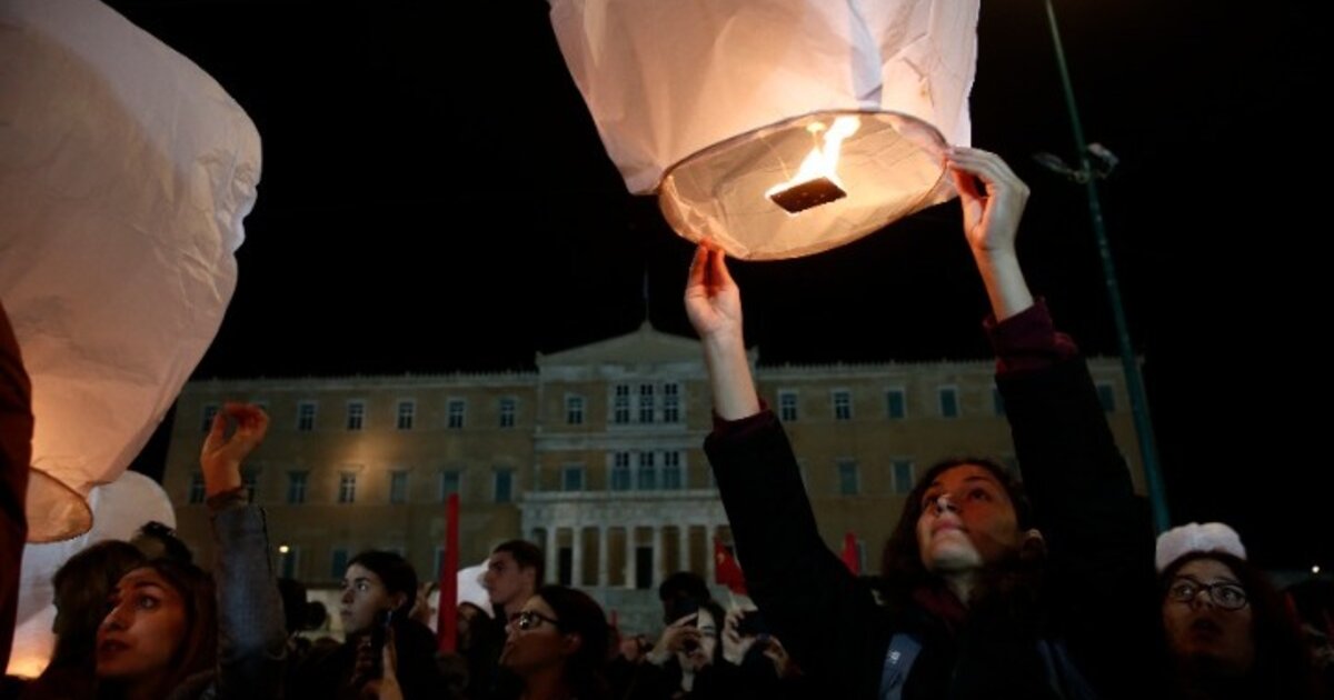 Φαναράκια στον ουρανό για τους νεκρούς στα Τέμπη