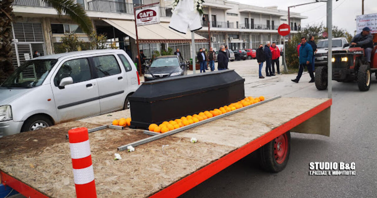Η διαμαρτυρία είχε και συμβολισμούς καθώς οι αγρότες μετέφεραν σε αυτοσχέδια νεκροφόρα φέρετρο γεμάτο με πορτοκάλια κάνοντας με αυτόν τον τρόπο την "κηδεία" τους, όπως ανέφεραν, ενώ πένθιμα στέφανα τοποθετήθηκαν στην είσοδο της Π.Ε Αργολίδας, θέλοντας να δηλώσουν με αυτόν τον τρόπο το αδιέξοδο στο οποίο έχουν οδηγηθεί.