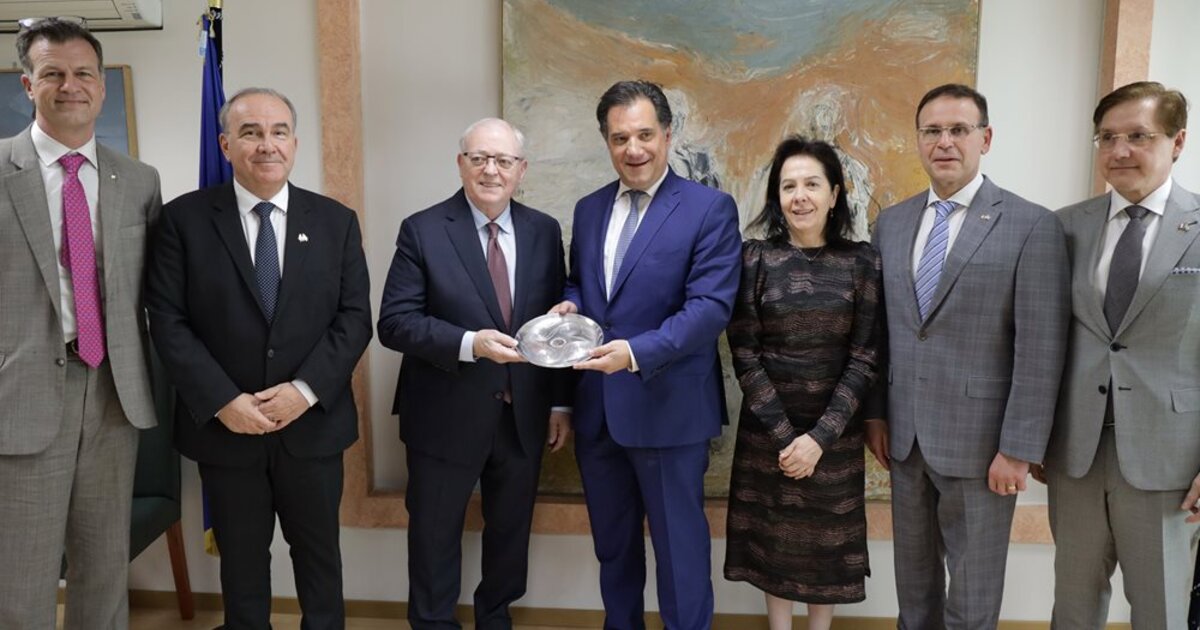 Οι δυνατότητες για περαιτέρω εμβάθυνση των διμερών οικονομικών σχέσεων συζητήθηκαν στη συνάντηση που είχαν ο υπουργός Ανάπτυξης και Επενδύσεων Άδωνις Γεωργιάδης και ο αναπληρωτής υπουργός Νίκος Παπαθανάσης με τον πρόεδρο της Γερουσίας του Καναδά, George J. Furey, αντιπροσωπεία γερουσιαστών και τον Πρέσβη του Καναδά , Mark Allen.