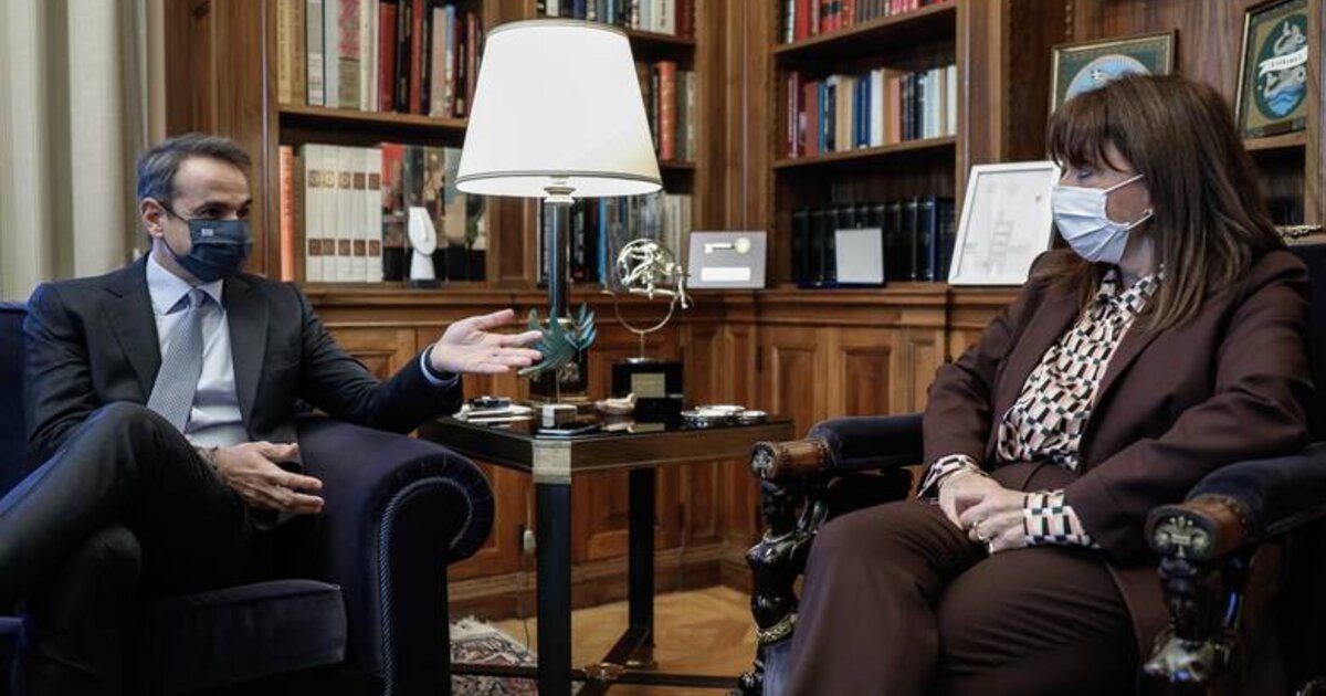 Συνάντηση Μητσοτάκη - Σακελλαροπούλου στο Προεδρικό Μέγαρο