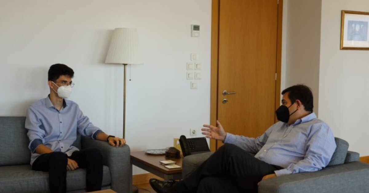 Κατά τη συνάντηση, όπως αναφέρει ο υπουργός σε ανάρτησή του στα κοινωνικά δίκτυα, συνεχάρη τον 19χρονο μαθητή για τα αποτελέσματά του στις εξετάσεις και του ευχήθηκε καλή επιτυχία στις σπουδές του.