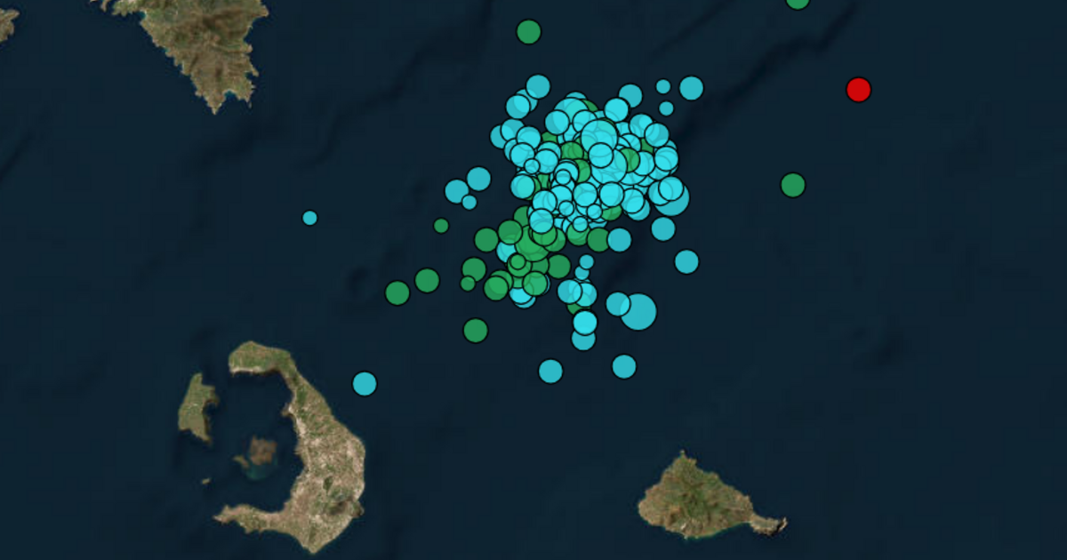 Συνεχίζεται με αμείωτο ρυθμό η σεισμική δραστηριότητα μεταξύ Σαντορίνης, Ανάφης και Αμοργού, με απανωτούς σεισμούς.