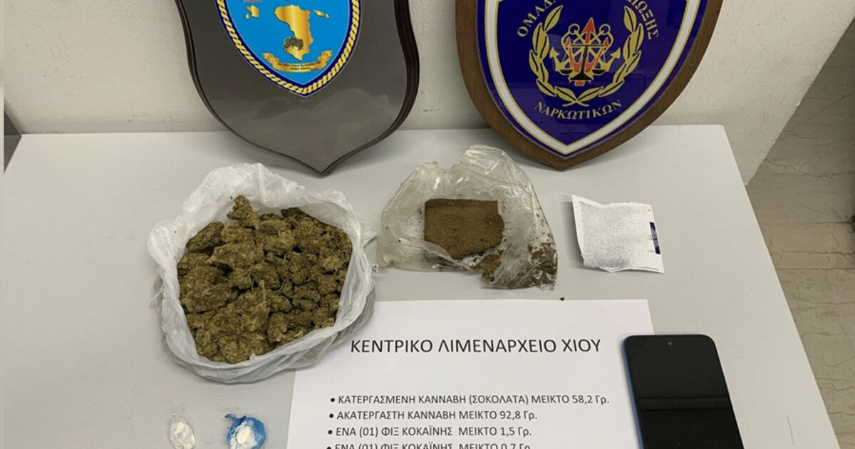 Στη σύλληψη ενός 21χρονου προχώτησαν το απόγευμα του Σαββάτου στελέχη της Περιφερειακής Ομάδας Δίωξης Ναρκωτικών (Π.Ο.Δ.Ι.Ν.) του Κεντρικού Λιμεναρχείου Χίου, καθώς και στελέχη του Γραφείου Ασφαλείας του Κεντρικού Λιμεναρχείου Χίου, για παράβαση του νόμου «περί εξαρτησιογόνων ουσιών».