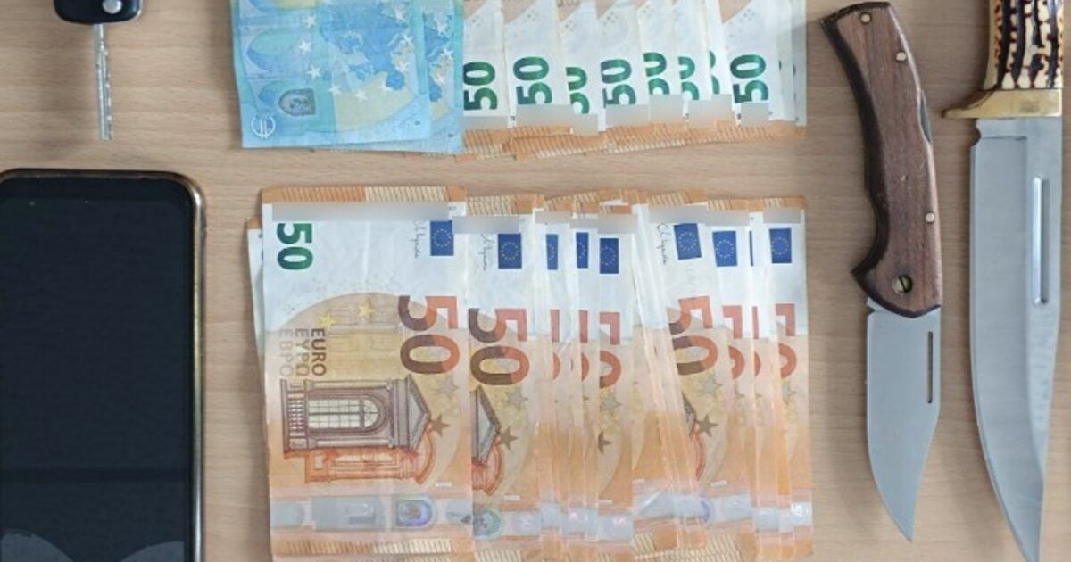 Στην κατοχή του 53χρονου βρέθηκαν και κατασχέθηκαν δύο μαχαίρια με μήκος λάμας εννέα και δεκαοκτώ εκατοστών, αντίστοιχα, το χρηματικό ποσό των 1.790 ευρώ, ενώ επιπλέον κατασχέθηκαν ένα ΙΧ αυτοκίνητο και ένα κινητό τηλέφωνο, ως μέσα τέλεσης της αξιόποινης πράξης.