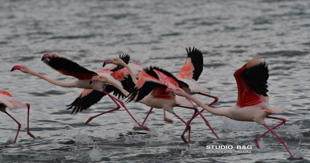 Είκοσι ροζ φλαμίνγκο έφτασαν στον Υδροβιότοπο της παραλιακής στο Ναύπλιο, την Πέμπτη 1η Δεκεμβρίου. Τα πανέμορφα φοινικόπτερα την περίοδο αυτή βρίσκονται σε χειμερινή μετανάστευση πηγαίνοντας σε πιο θερμές χώρες για να ξεχειμωνιάσουν.
