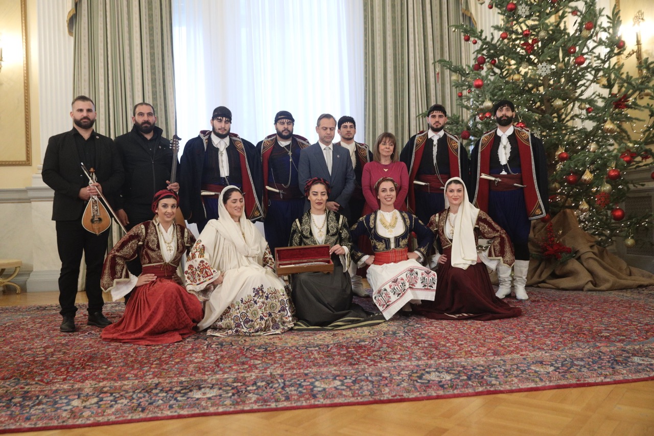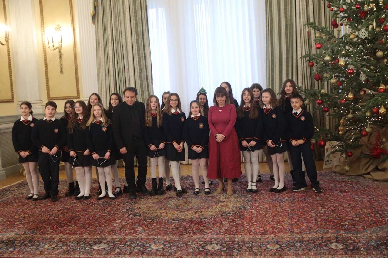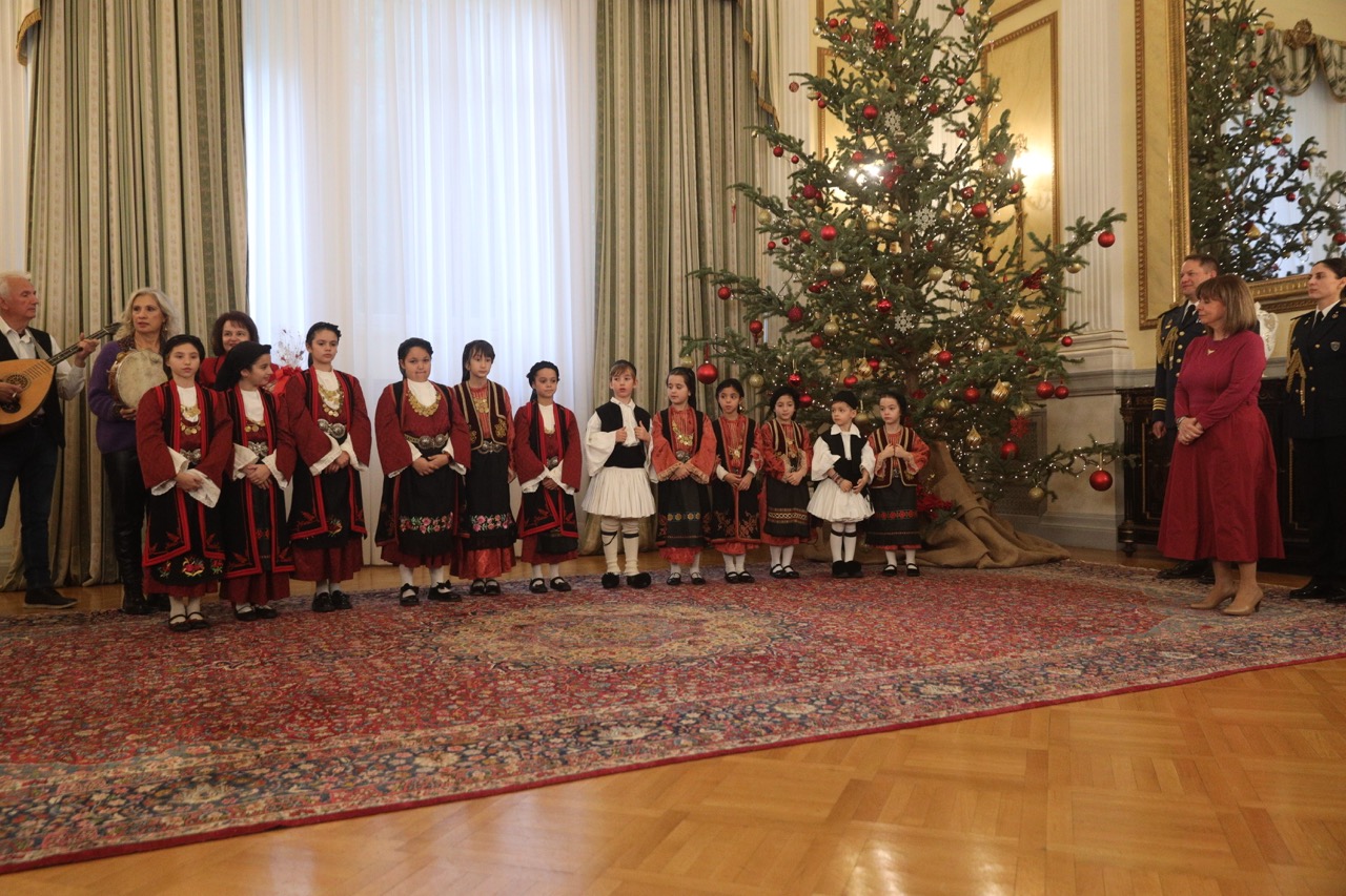 Χριστουγεννιάτικα Κάλαντα και ευχές από κάθε γωνιά της Ελλάδας άκουσε σήμερα η Πρόεδρος της Δημοκρατίας Κατερίνα Σακελλαροπούλου στην καθιερωμένη χριστουγεννιάτικη εκδήλωση στην Προεδρία της Δημοκρατίας.