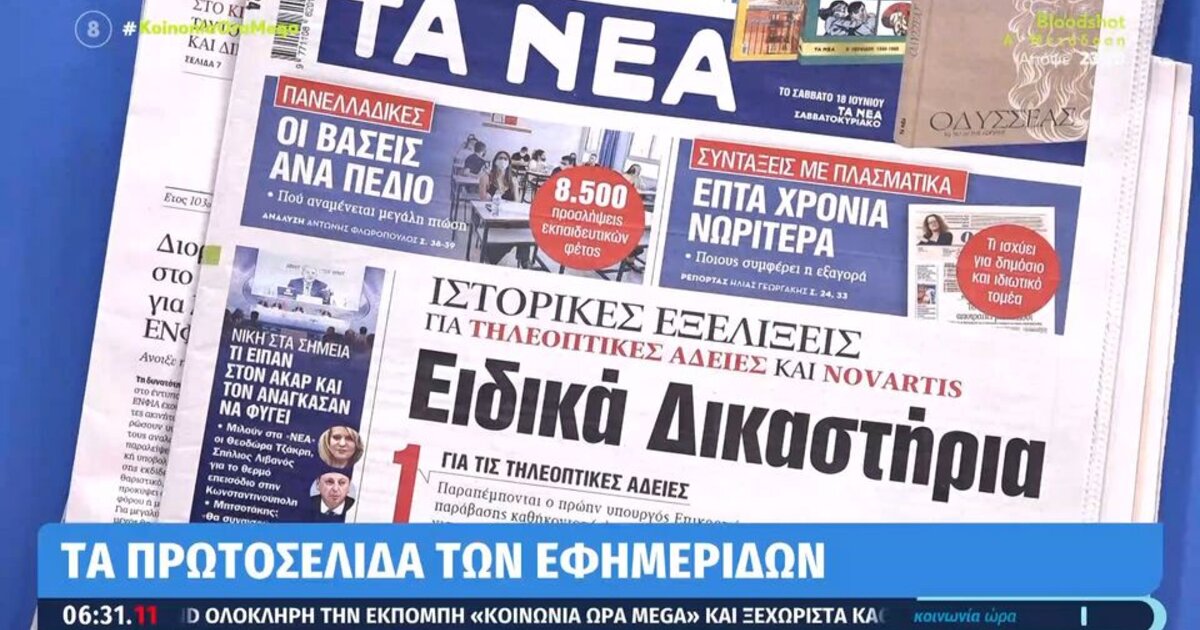 Τα πρωτοσέλιδα των εφημερίδων