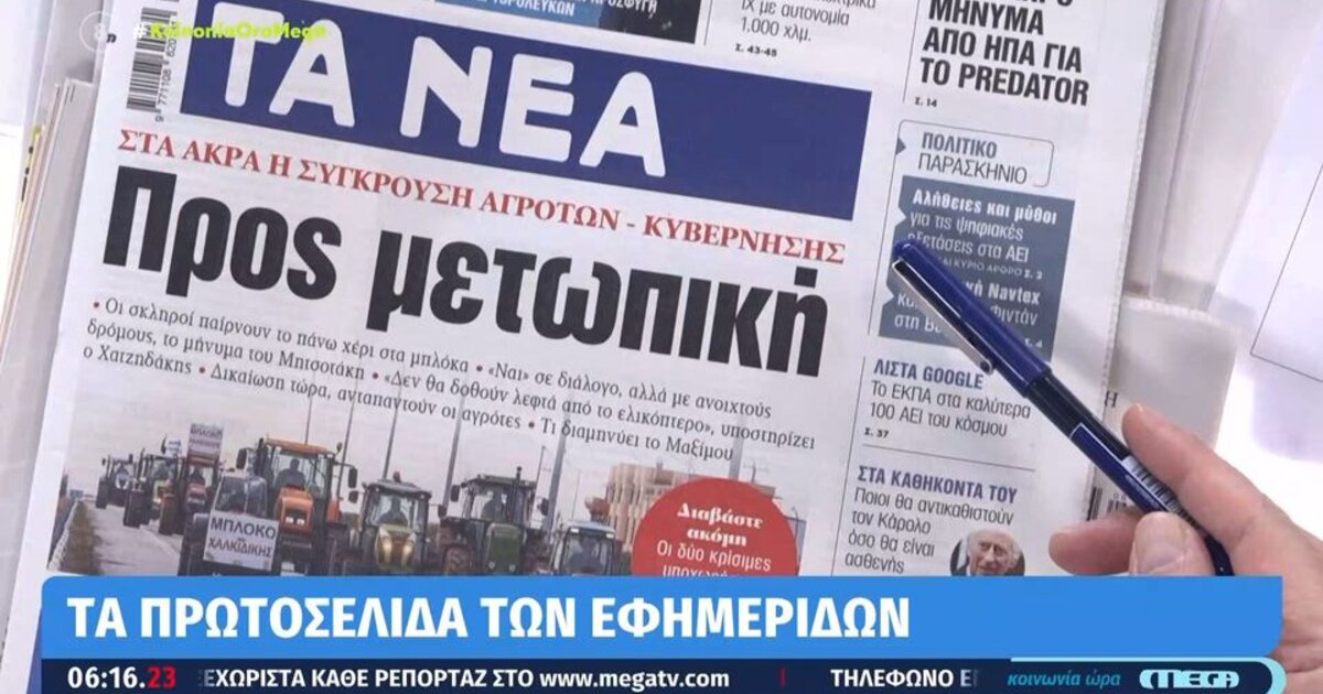 ΤA NEA: "Προς μετωπική- ΣΤΑ ΑΚΡΑ Η ΣΥΓΚΡΟΥΣΗ ΑΓΡΟΤΩΝ- ΚΥΒΕΡΝΗΣΗΣ"