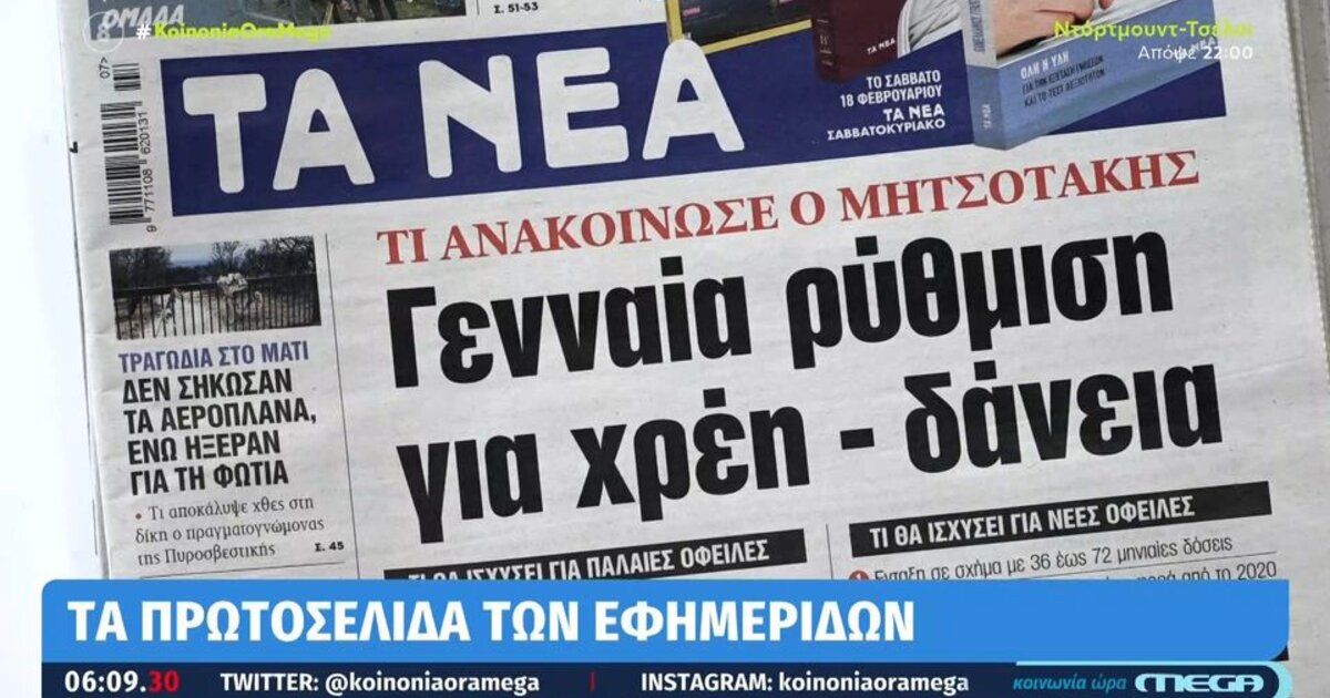 Τα πρωτοσέλιδα των εφημερίδων σήμερα