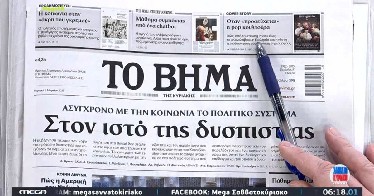 ΤΟ ΒΗΜΑ ΤΗΣ ΚΥΡΙΑΚΗΣ: "Στον ιστό της δυσπιστίας"