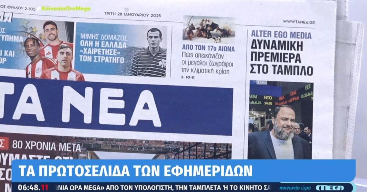 Τα πρωτοσέλιδα των σημερινών εφημερίδων