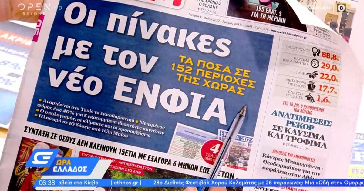 ΕΛΕΥΘΕΡΟΣ ΤΥΠΟΣ: Οι πίνακες με τον νέο ΕΝΦΙΑ