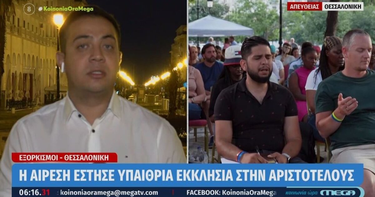 ΕΛΛAΔΑΤελετές ... εξορκισμών με κοινό στην πλατεία Αριστοτέλους!Από την αίρεση "Εκκλησία των Εθνών"24.08.2022NewsroomSHARE: Facebook Twitter Messenger Whatsapp Viber SHARE Facebook Twitter Messenger Whatsapp Viber FacebookTwitterMessengerWhatsappViber Μπορεί να φαντάζει ως αστείο, αλλά είναι πραγματικό. Δύο κυριακάτικα βράδια, μέσα στο καλοκαίρι, στο κέντρο της Θεσσαλονίκης, σύμφωνα με πληροφορίες, έγινε τελετή από αίρεση στην πλατεία Αριστοτέλους που περιελάμβανε ακόμα και προβολή εξορκισμών. Ακολουθήστε το Cretalive στο Google News και στο FacebookΚάντε εγγραφή στο κανάλι μας στο YouTube Σχετικά Tags Αίρεση Πλατεία Αριστοτέλους Θεσσαλονίκη Εξορκισμός
