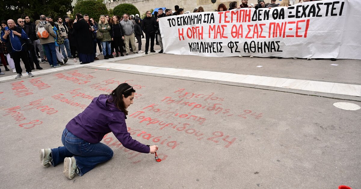 Τέμπη: Έγραψαν τα ονόματα των 57 νεκρών μπροστά από το Μνημείο του Αγνώστου Στρατιώτη