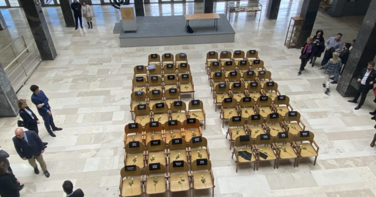 Τοποθέτησαν 57 τριαντάφυλλα σε ισάριθμες κενές καρέκλες, καθεμία από τις οποίες έγραφε σε μαύρο φόντο το όνομα και την ηλικία των θυμάτων της ανείπωτης εθνικής τραγωδίας.