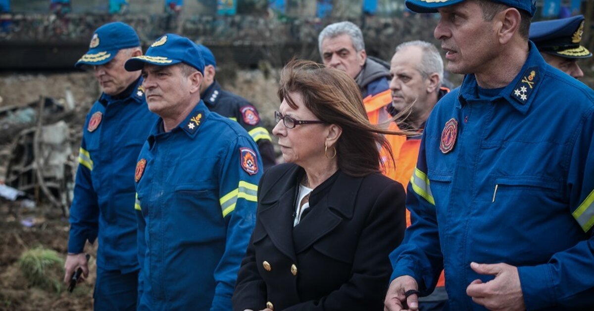Τέμπη: Στο σημείο της τραγωδίας η Κατερίνα Σακελλαροπούλου