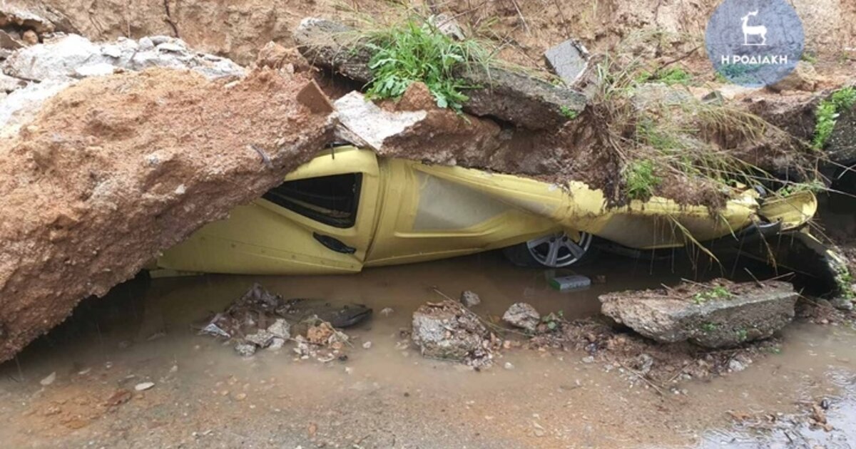 Ο τοίχος όπως φαίνεται στις φωτογραφίες και τα βίντεο τα οποία κατέγραψε η «Ροδιακή», δεν καταπλάκωσε απλώς τα αυτοκίνητα, αλλά τα συνέθλιψε, κάνοντάς τα ένα με το έδαφος.