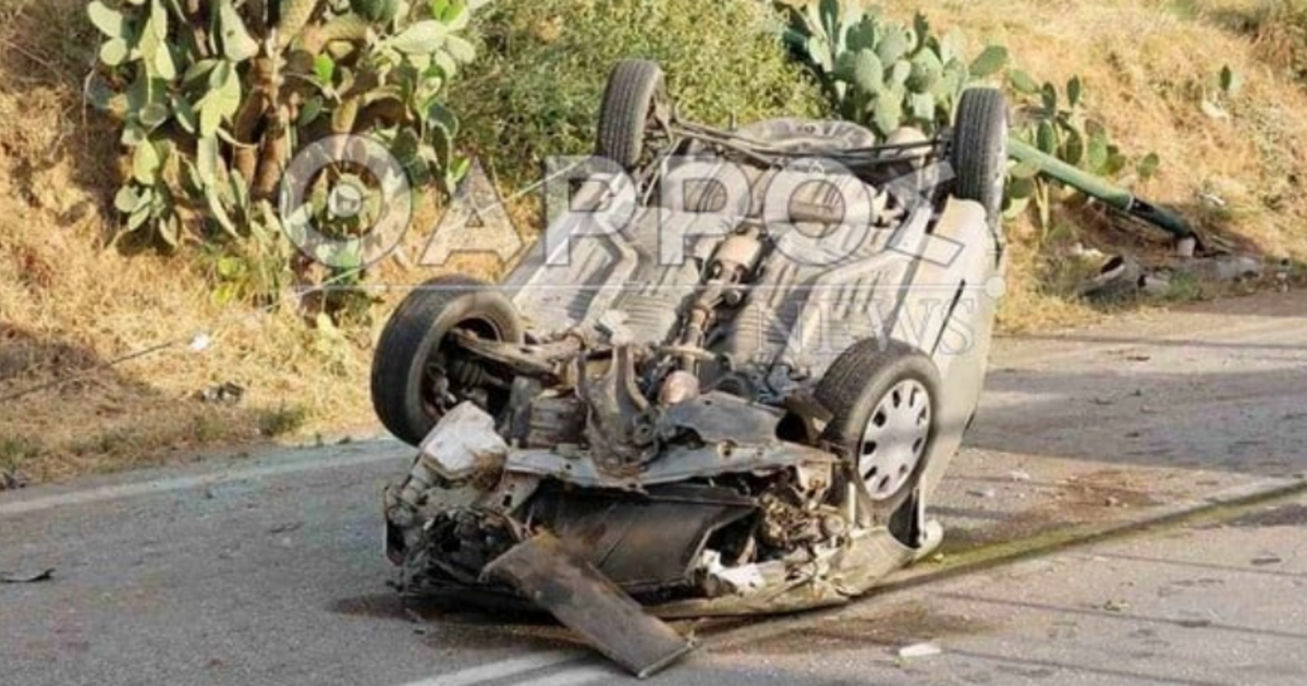 Από τη σφοδρή σύγκρουση το αυτοκίνητο ντεραπάρισε.