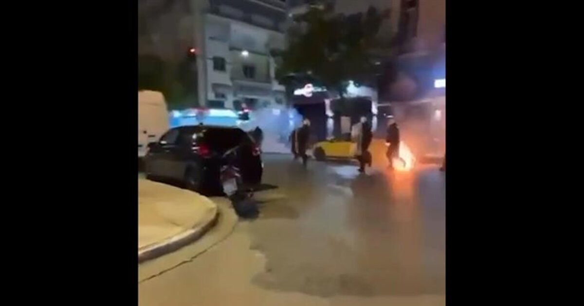 Μία ομάδα που φορούσε κράνη άρχισε να εκτοξεύει μολότοφ και πέτρες σε διμοιρία των ΜΑΤ.