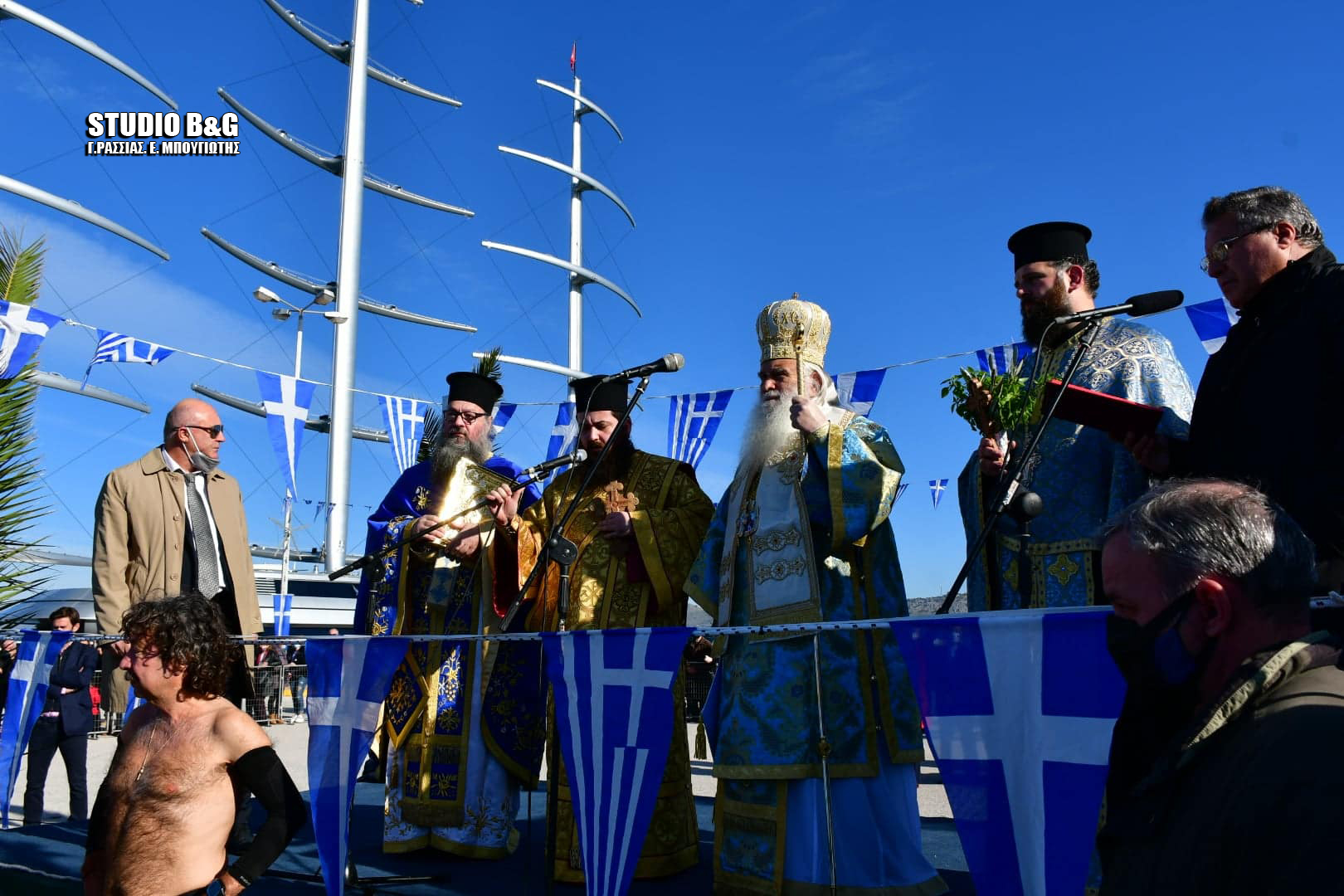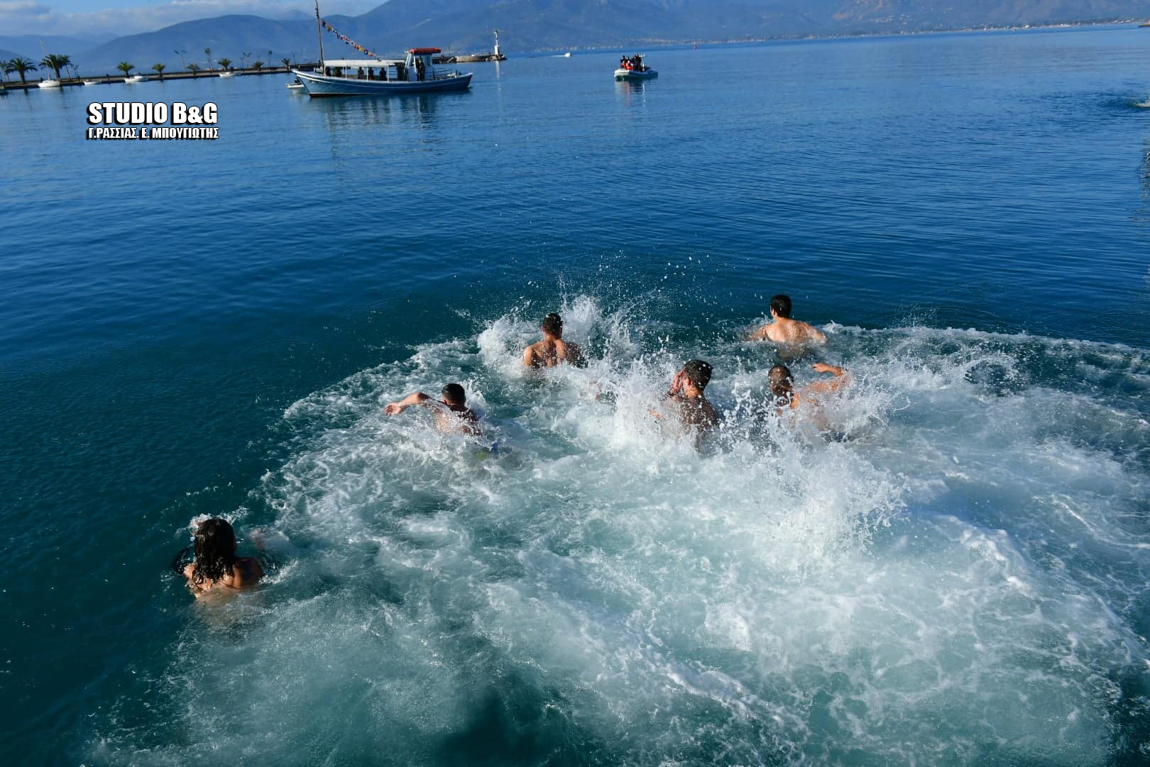Ακολούθησε η κατάδυση του Τιμίου Σταυρού στο λιμάνι του Ναυπλίου, ενώ αρκετοί ήταν αυτοί που έπεσαν για να πιάσουν τον Σταυρό .