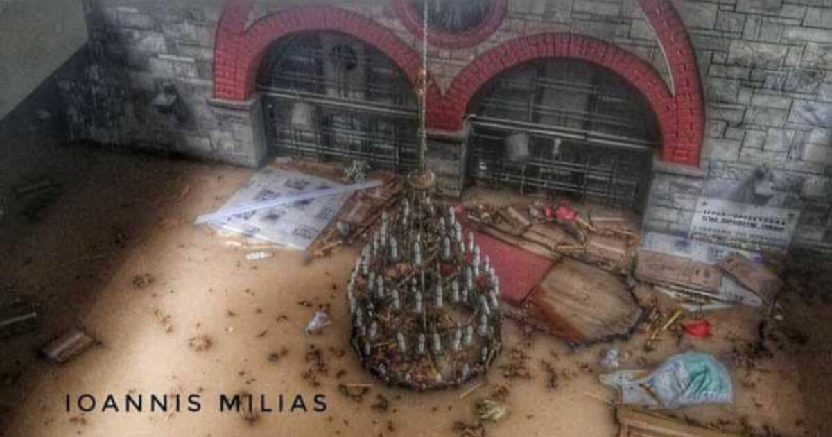 Νέες εικόνες από το Ιερό Προσκύνημα Αγίας Παρασκευής Τεμπών, οι οποίες δείχνουν το επίπεδο των καταστροφών, όσο υποχωρούν τα ύδατα.