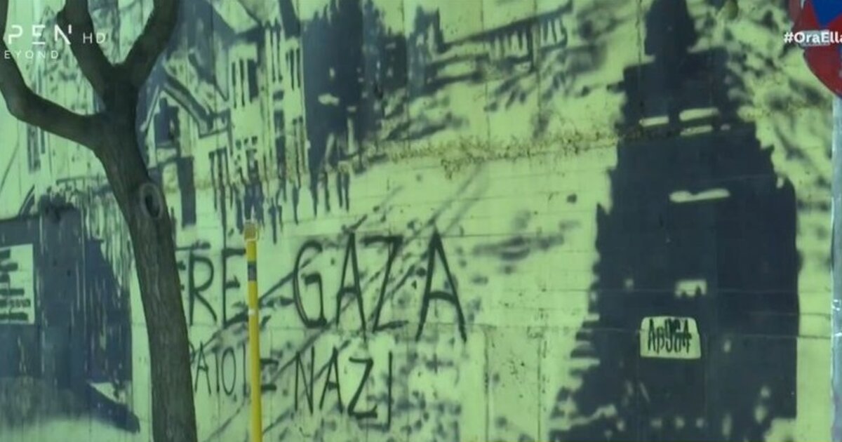 Συγκεκριμένα, κάποιοι έγραψαν συνθήματα και μουτζούρωσαν την τοιχογραφία. «Free Palestine Εβραίοι = Ναζί» ανέφεραν τα συνθήματα.