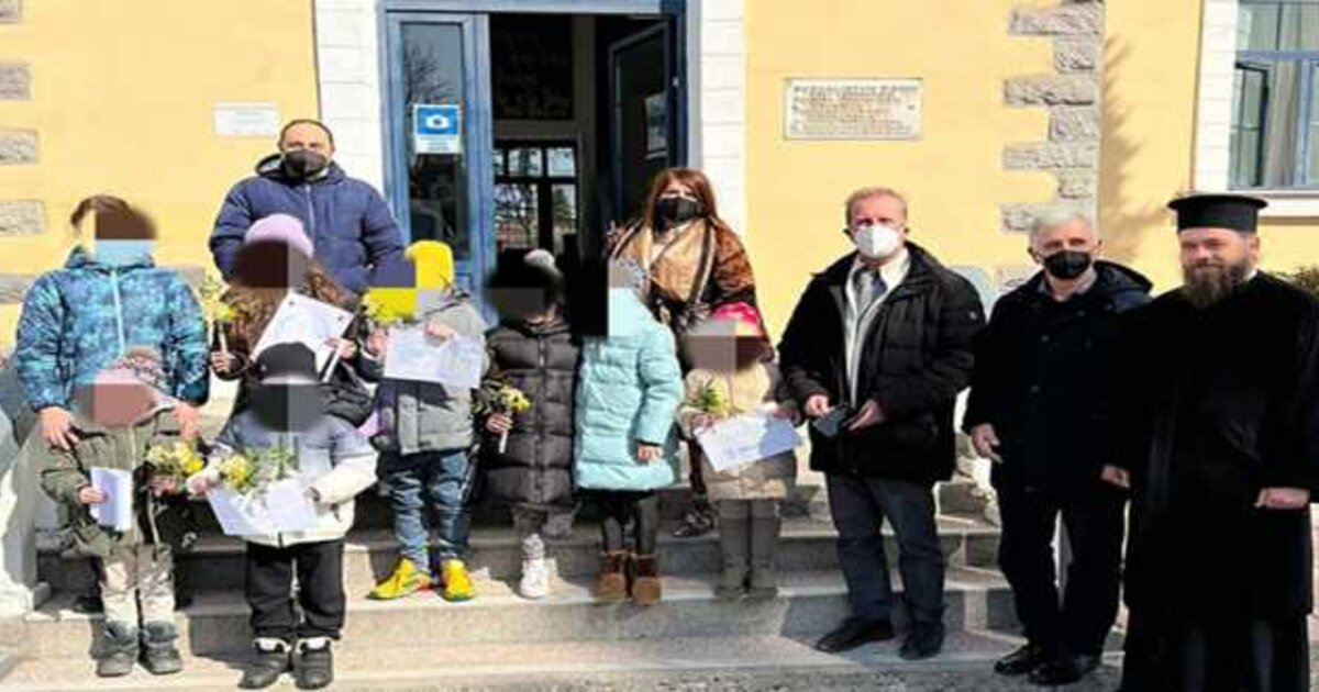 Θεσσαλονίκη: Με ποντιακή λύρα και λουλούδια υποδέχθηκαν μικροί μαθητές προσφυγόπουλα από την Ουκρανία