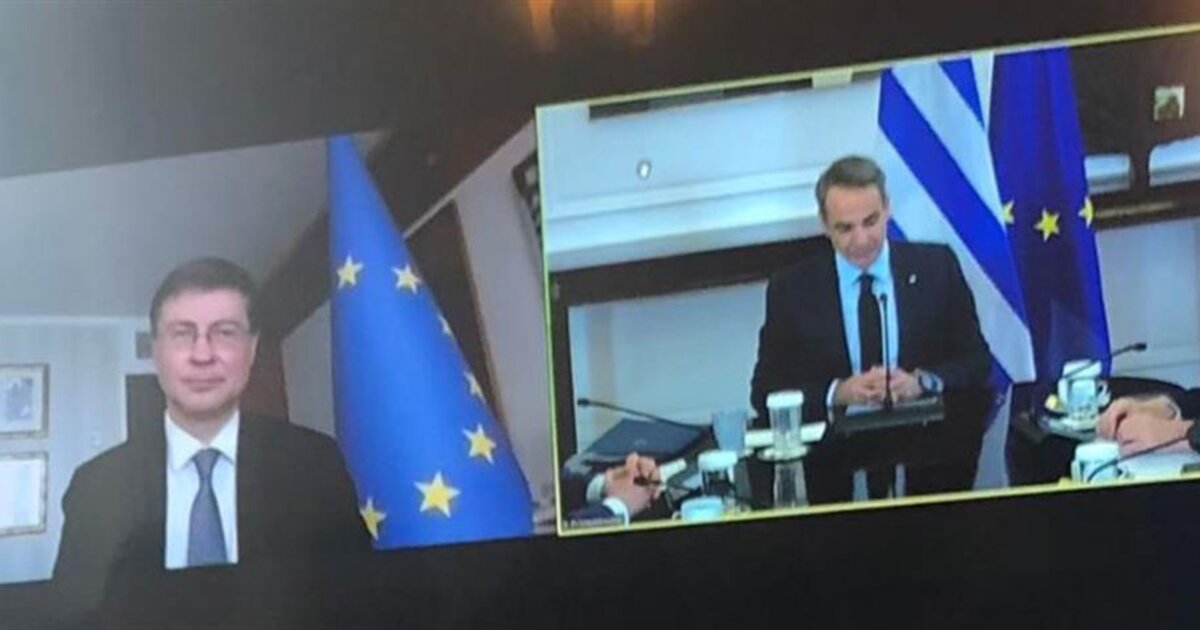 Βάλντις Ντομπρόβσκις: Ευχαριστώ κ. Πρωθυπουργέ. Ευχαριστώ πολύ για τα λόγια σας. Προσβλέπω στην επόμενη συνάντησή μας δια ζώσης. Αλλά τώρα ας προχωρήσουμε παραδίδοντάς σας έναν «φάκελο» με την εκταμίευση των 3,6 δισεκατομμυρίων ευρώ, η οποία αποτελεί την πρώτη τακτική καταβολή στο πλαίσιο των (Εθνικών) Σχεδίων Ανάκαμψης και Ανθεκτικότητας. Συγχαρητήρια. Σας παραδίδω ψηφιακά τον φάκελο.