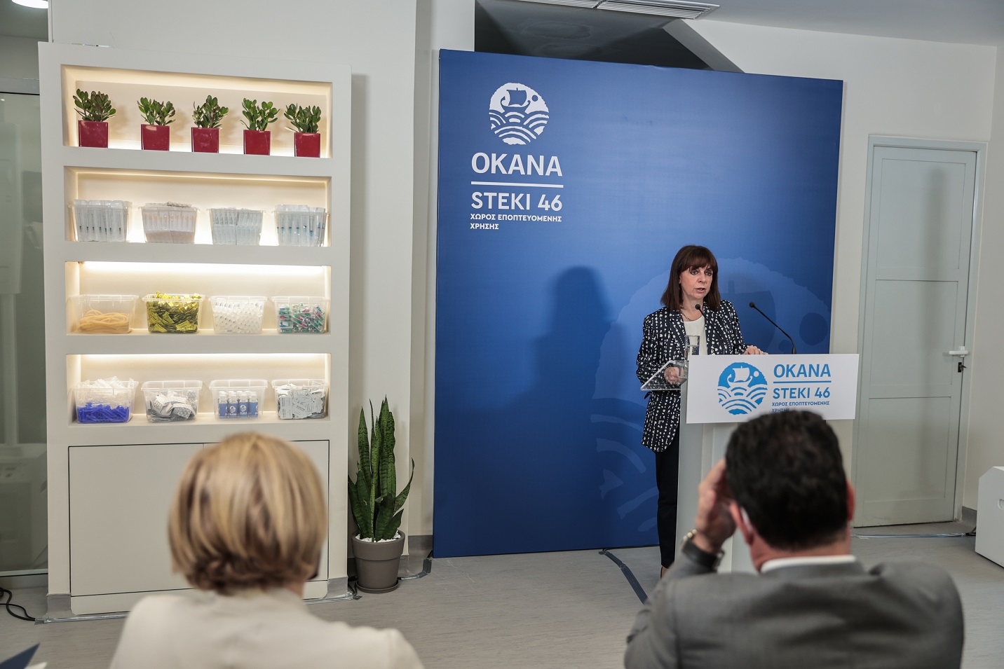 Εγκαινιάζοντας τον πρώτο Χώρο Εποπτευόμενης Χρήσης του ΟΚΑΝΑ, η κ. Σακελλαροπούλου ανέφερε ότι σε αυτόν μπορεί να γίνεται ασφαλής χρήση ναρκωτικών ουσιών, υπό επιτήρηση και με καθαρά σύνεργα, έτσι ώστε να διαφυλάσσεται κατά το δυνατόν η υγεία των χρηστών και να αποφεύγεται η διασπορά μεταδιδόμενων νοσημάτων. Ταυτόχρονα, επεσήμανε πόσο σημαντικό είναι το γεγονός ότι οι φιλοξενούμενοι στο «STEKI 46» θα έχουν άμεση σύνδεση με τα βασικά θεραπευτικά προγράμματα του ΟΚΑΝΑ.