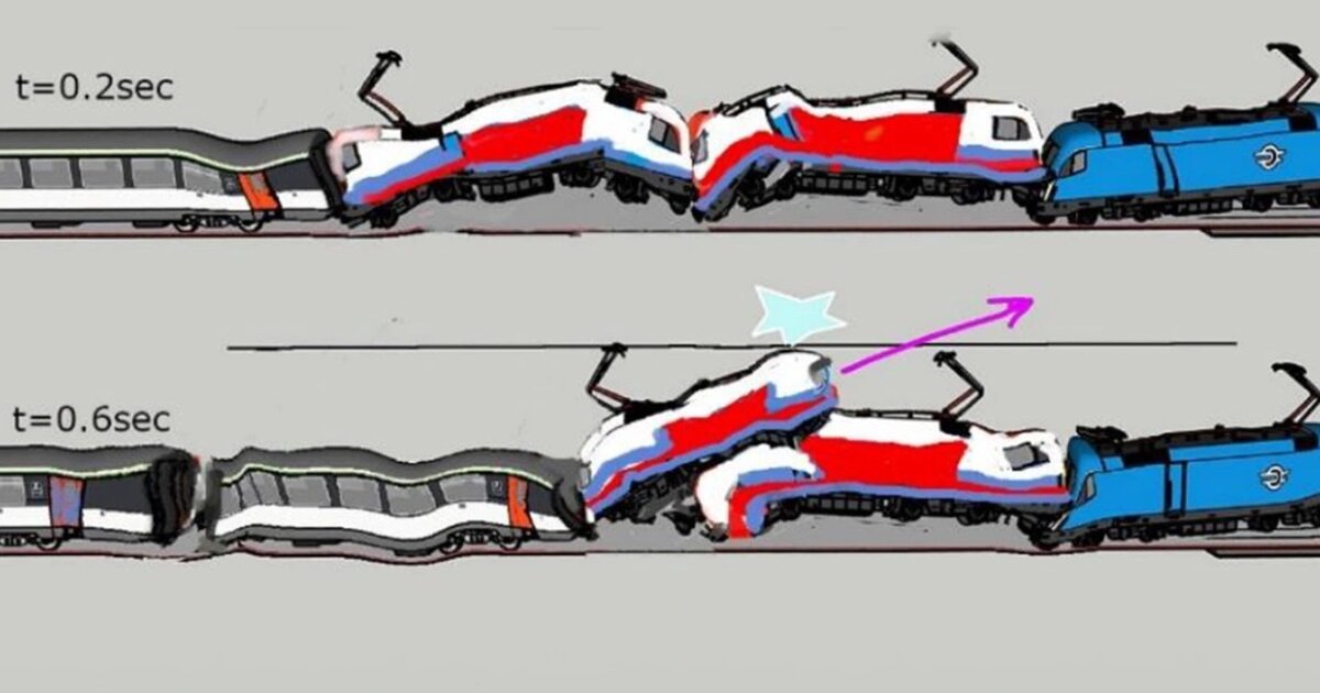 Εκτιμώμενη περιοχή δεύτερης σύγκρουσης για την εμπορική αμαξοστοιχία (προσομοιωμένη εικόνα πίσω από το βίντεο).
