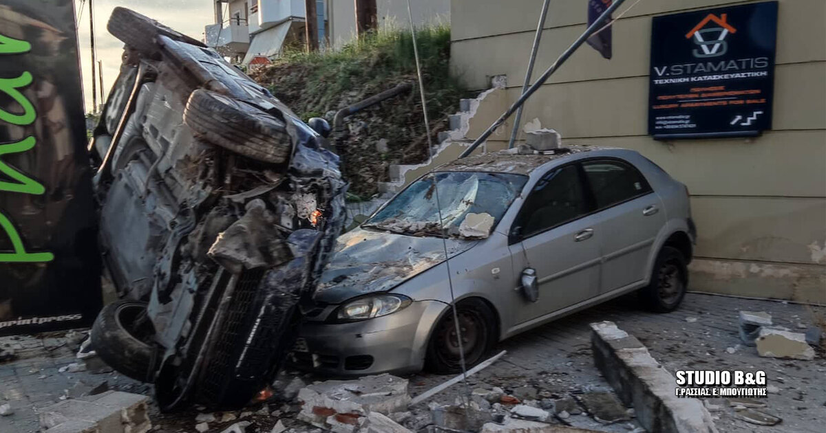 "Τρελή" πορεία ΙΧ - Γκρέμισε μάντρα και έπεσε πάνω σε αυτοκίνητα
