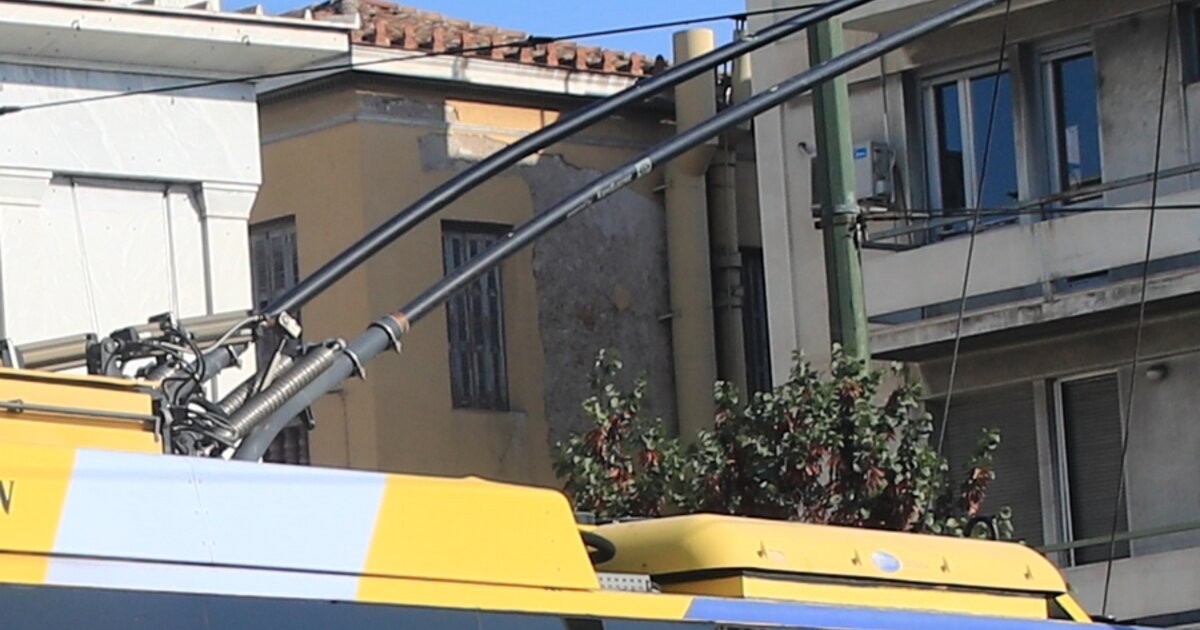 Η κεραία του τρόλεϊ έπεσε στην οροφή του λεωφορείου.