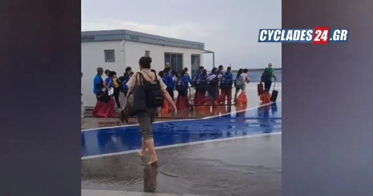 Ξυπόλητοι και με σακούλες στα πόδια επιβιβάστηκαν σε πλοίο στην Τήνο – Βίντεο